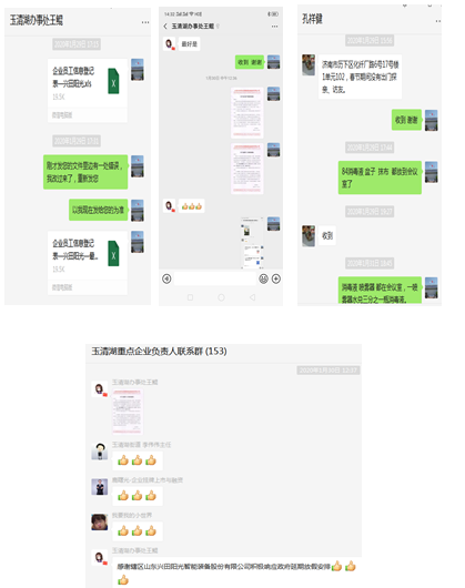 (上圖為2月5日,就公司復工申請事宜,槐蔭區(qū)工信局惠健副局長和槐蔭區(qū)玉清湖街道辦事處李偉偉副主任等領導蒞臨公司進行現(xiàn)場考察驗收)